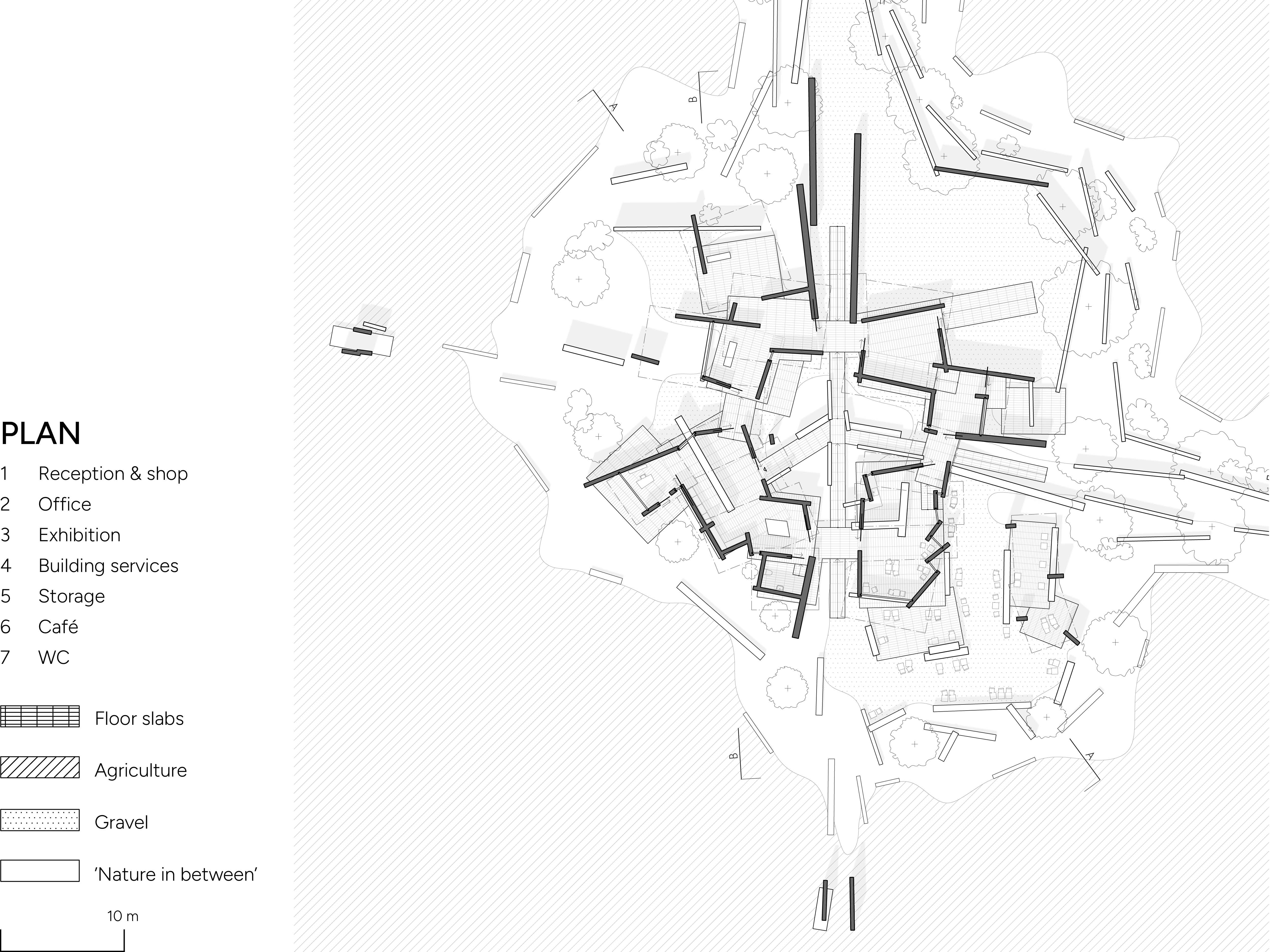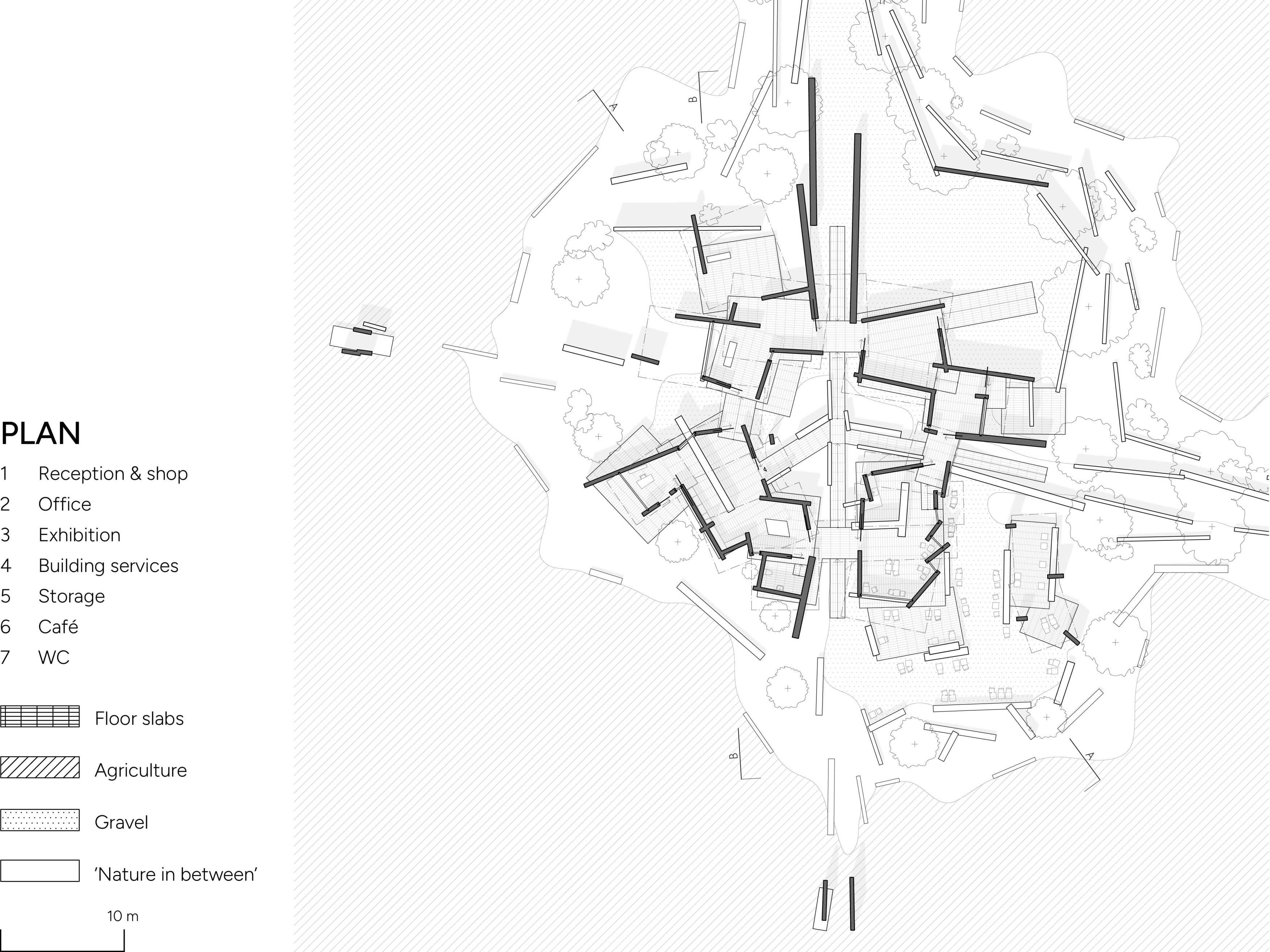 Nature slowly takes over this naturum which aims to highlight how efficient agriculture affects biodiversity. Like the tree lines in the pre-existing landscape, the naturum appears to be falling apart – but at the same time makes evident the interdependence between the parts and the whole.