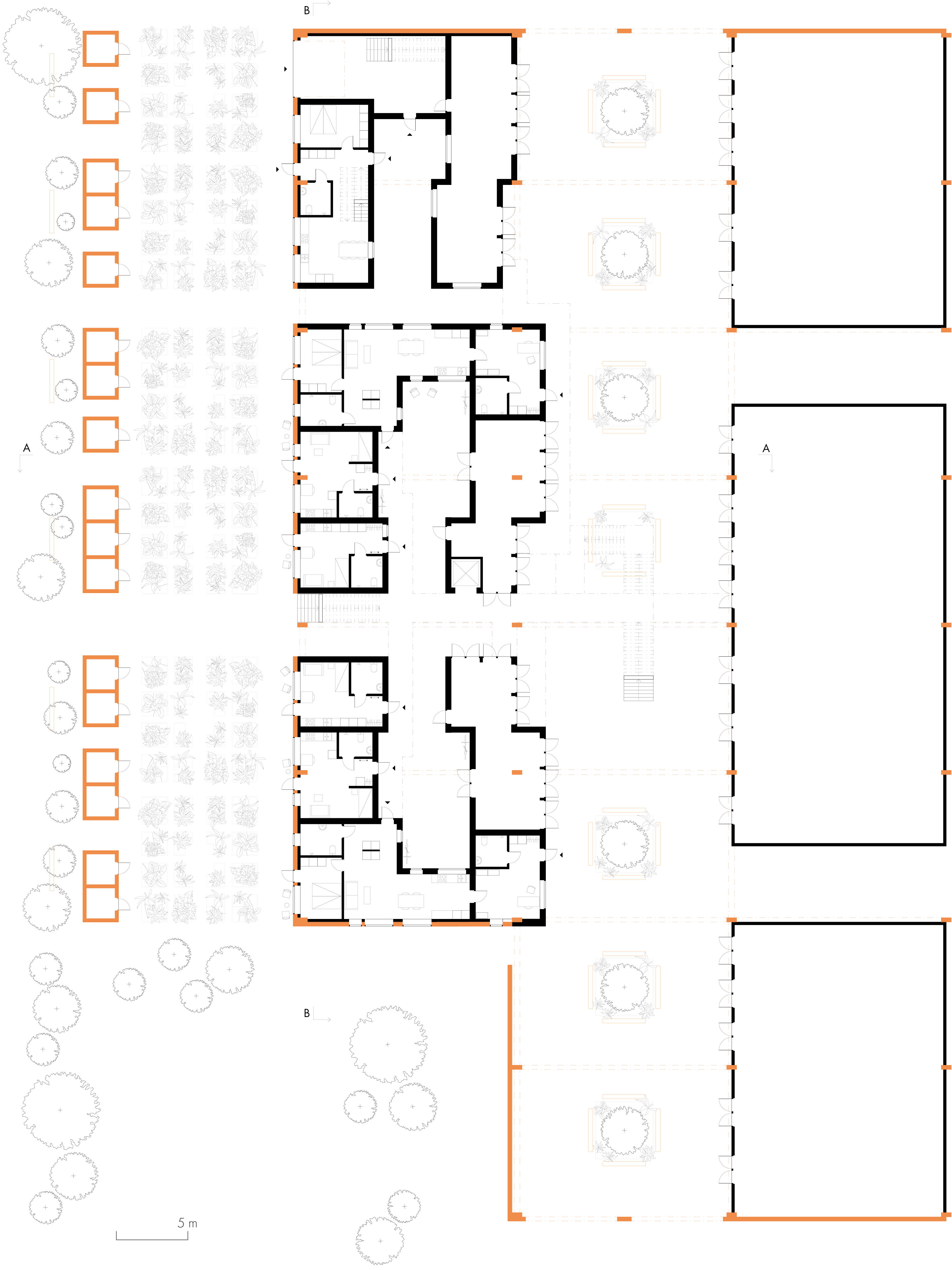 The target group for this project consists of people who desire a ‘productive lifestyle’ and who are interested in sharing different aspects of their dwelling. It could be persons in creative or craft professions. Half of the dwellings are one room apartments that could suit students as well as persons in need of less private space since social and productive spaces are shared. The dwelling complex hosts an atelier, work- and study places and a workshop. Some of the apartments can be used partly as a commercial premise, as an extra room for the dwelling or be rented out. The aspiration is that the entire public street will consist of a mix of dwellings, offices, shops, culture and more. At the same time, the dwellers have access to places, such as terraces and patios, with a higher degree of privacy.