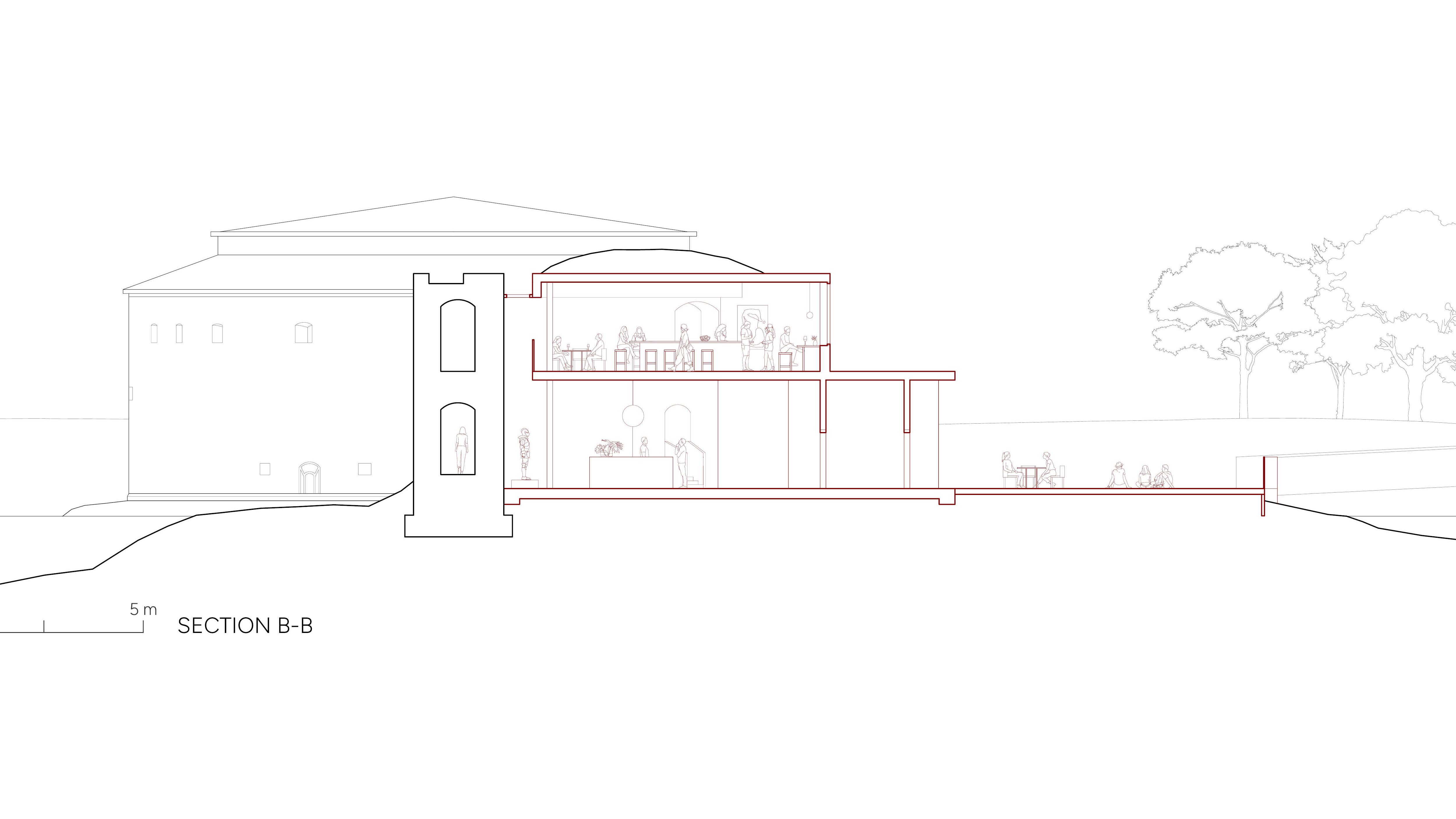The eastern defense tower of Malmöhus castle is connected to its surroundings in this project proposal, but is at the same time developed to work as an independent part of Malmö museum. In order to preserve as much as possible of the tower, the adjacent rampart is used for accessible circulation, exhibitions and a café/bar. The tower will thus be alive both day and night.
