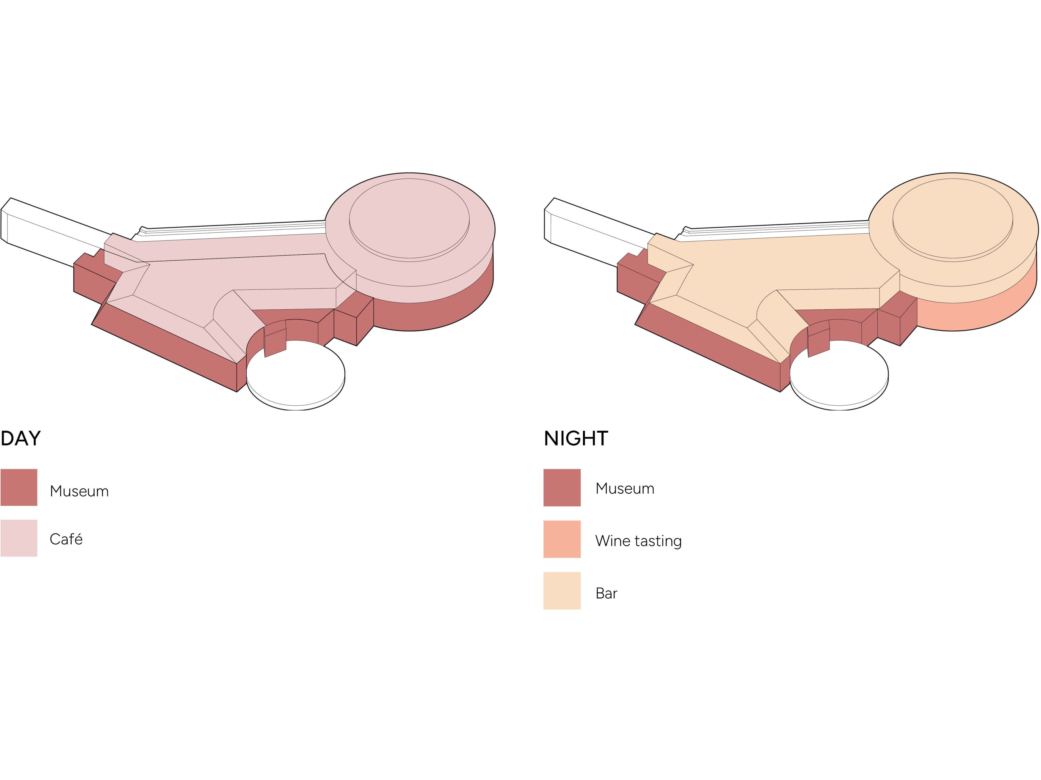 However, the tower’s functional value today is low and it is disconnected from both the city and the museum. This project aims to connect the tower better to its surroundings but at the same time make it work as a independent part of the castle island. A bridge from the east will connect the tower (and the museum) to the city. The tower also gets a new entrance from the west which will serve visitors coming via the museum courtyard. The adjacent rampart is used to create spaces for circulation, exhibitions and a café/wine bar. This way, the tower can be alive both day and night.