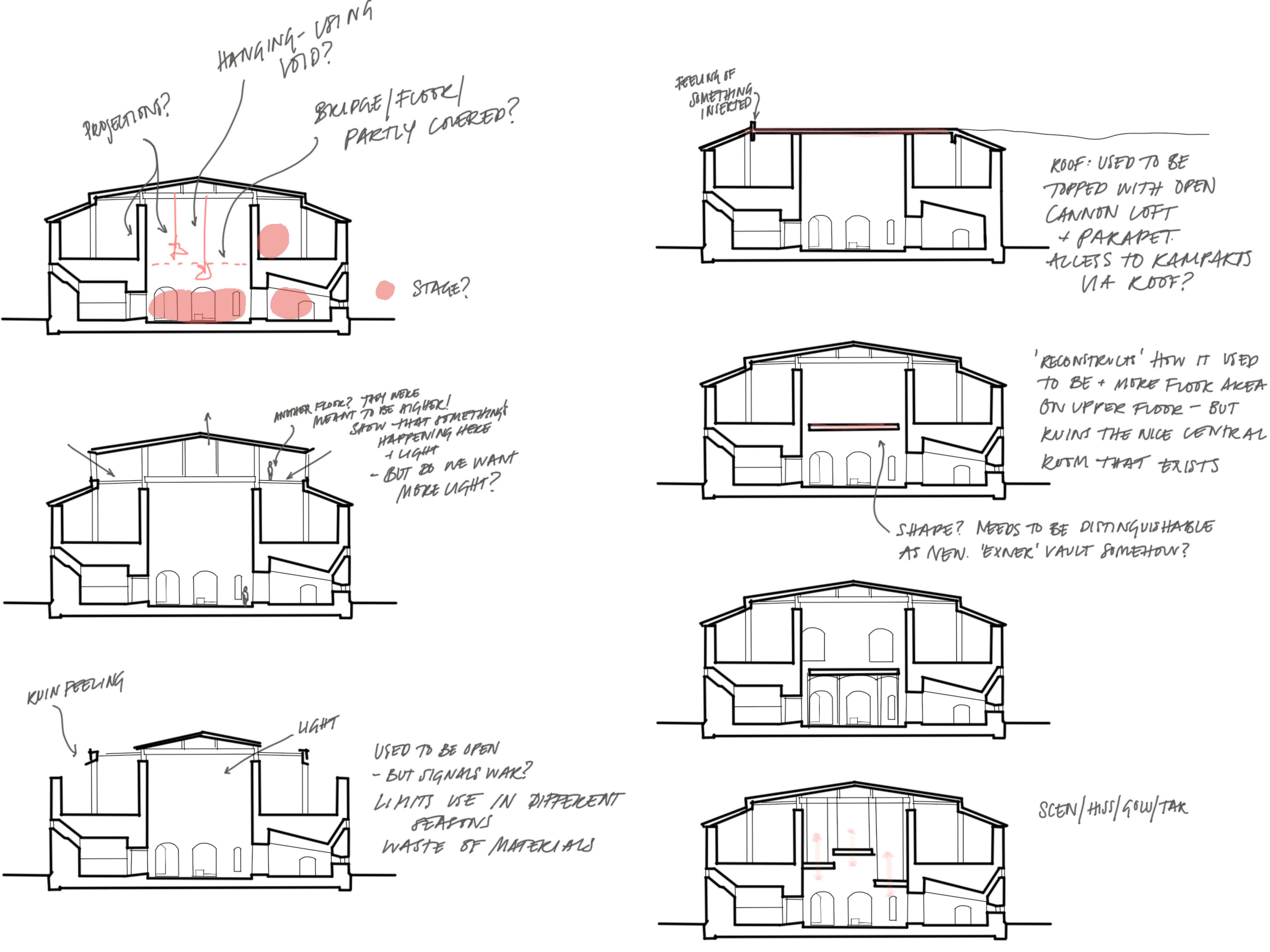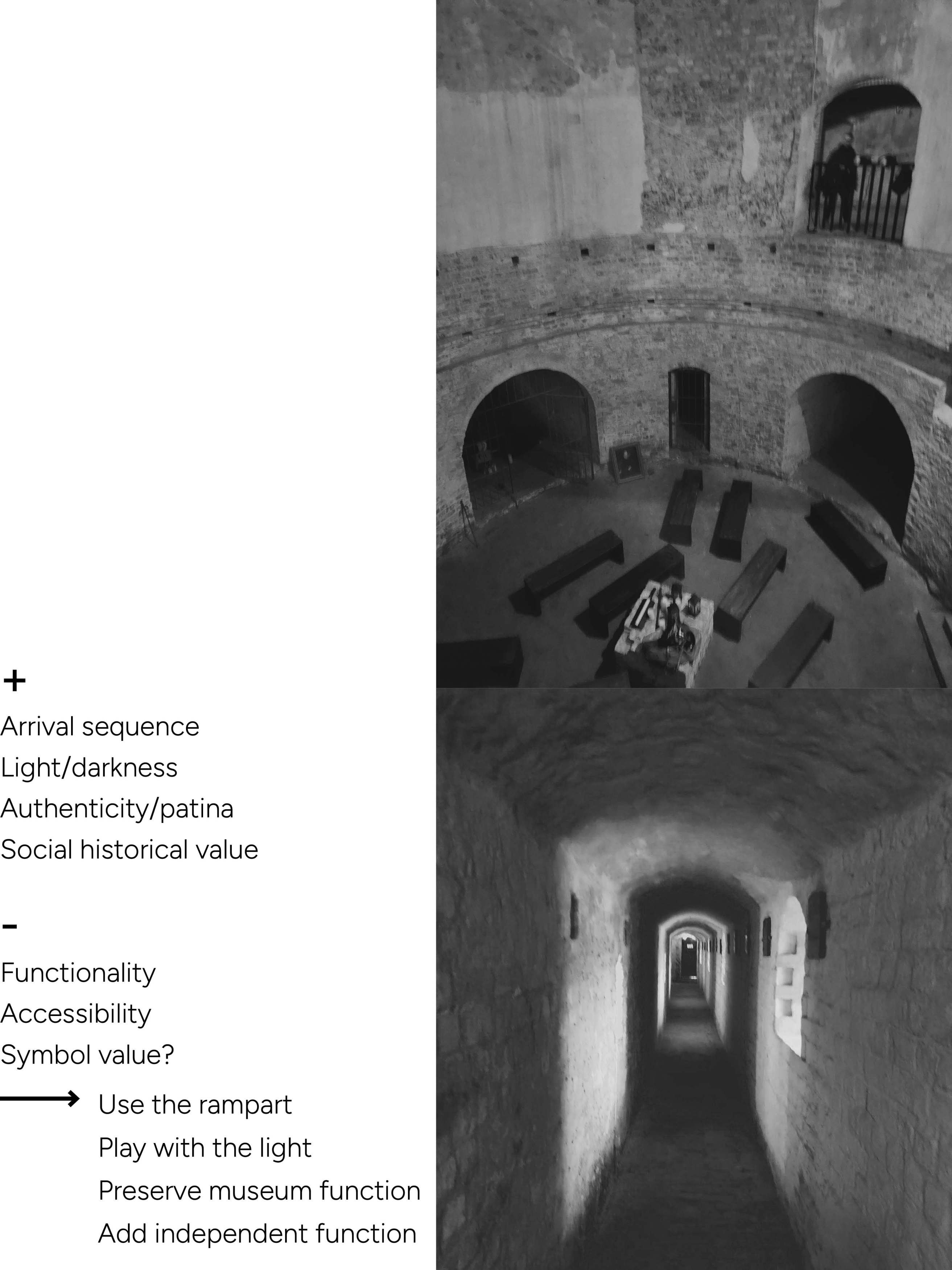 The eastern tower at Malmöhus castle has, like the castle itself, a rich history. Since its construction in the early 16th century, it has been used for defense purposes, for prisoners, as emergency housing, and as a museum. It has the capacity to show different periods and layers of society historically, which together with its authenticity and patina makes it worthy of preservation. The existing sequence arriving to the inner circular space in the tower has a special character both in terms of space and light/darkness. Those characteristics have been an inspiration for the addition to the tower.